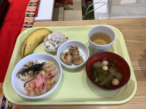 ちらし寿司は酢飯が苦手な子もいましたが、さくらでんぶのトッピングはピンク色が可愛くて人気でした💕