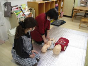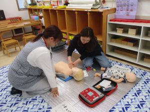 地域の方、保護者の方、職員がAED講習会に参加しました。